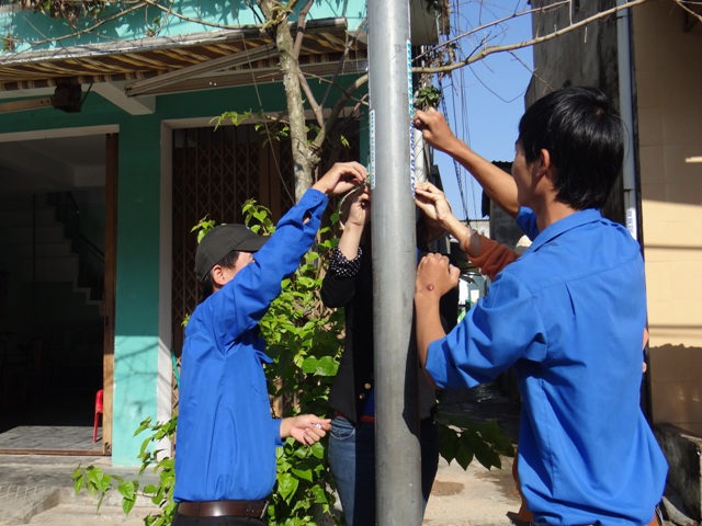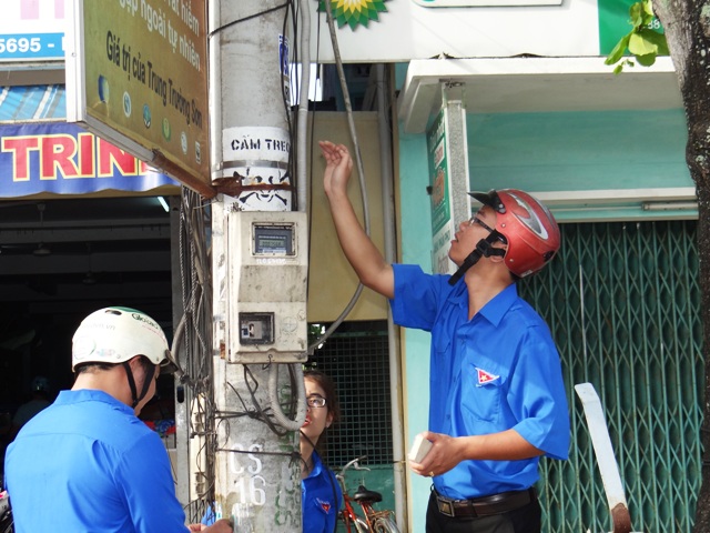 ĐVTN tham gia bóc xoá quảng cáo trái phép trên các tuyến đường trên địa bàn Tp. Tam Kỳ