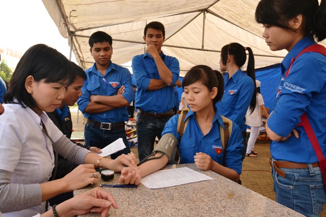 Đoàn viên thanh niên tham gia hiến máu Ngay sau phát động ra quân là chuỗi các hoạt động: diễu hành tuyên truyền Tháng Thanh niên; hiến máu tình nguyện (với 175 đơn vị máu được hiến); bóc xóa quảng cáo trái phép và tham gia điều tiết giao thông tại các nút giao thông trên địa bàn thành phố Tam Kỳ.