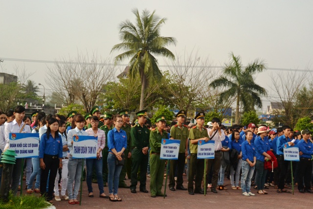 Quang cảnh lễ ra quân Với phương châm “Mỗi thanh niên một việc tốt, mỗi cơ sở Đoàn một hoạt động thiết thực tham gia thực hiện nếp sống văn minh đô thị và xây dựng nông thôn mới”, các hoạt động Tháng Thanh niên năm nay tại Quảng Nam sẽ tập trung vào các nhóm chủ đề chính: Học tập, quán triệt nghị quyết Đại hội Đoàn toàn quốc lần X, Đại hội Đoàn toàn tỉnh lần thứ XVII và tham gia góp ý sửa đổi Hiến pháp năm 1992; xây dựng nếp sống văn minh, bảo vệ môi trường, bảo đảm trật tự an toàn giao thông, tiếp tục cuộc vận động chung tay xây dựng nông thôn mới. Cạnh đó sẽ có các hoạt động văn hóa văn nghệ trong Ngày hội thanh niên Việt Nam; gặp gỡ, đối thoại với cấp ủy Đảng, chính quyền ở cả 3 cấp (Đoàn cấp xã, cấp huyện và cấp tỉnh); tuyên dương cán bộ Đoàn tiêu biểu, tuyên dương thanh thiếu niên hoàn lương, cảm hóa thanh thiếu niên chậm tiến. Song song đó còn có các hoạt động tư vấn hướng nghiệp, giới thiệu việc làm, diễn đàn trao đổi phương pháp học tập, phong trào thi đua dạy tốt, học tốt, tư vấn sức khỏe, khám bệnh, phát thuốc miễn phí cho người nghèo, hiến máu tình nguyện, ra mắt CLB Thầy thuốc trẻ.